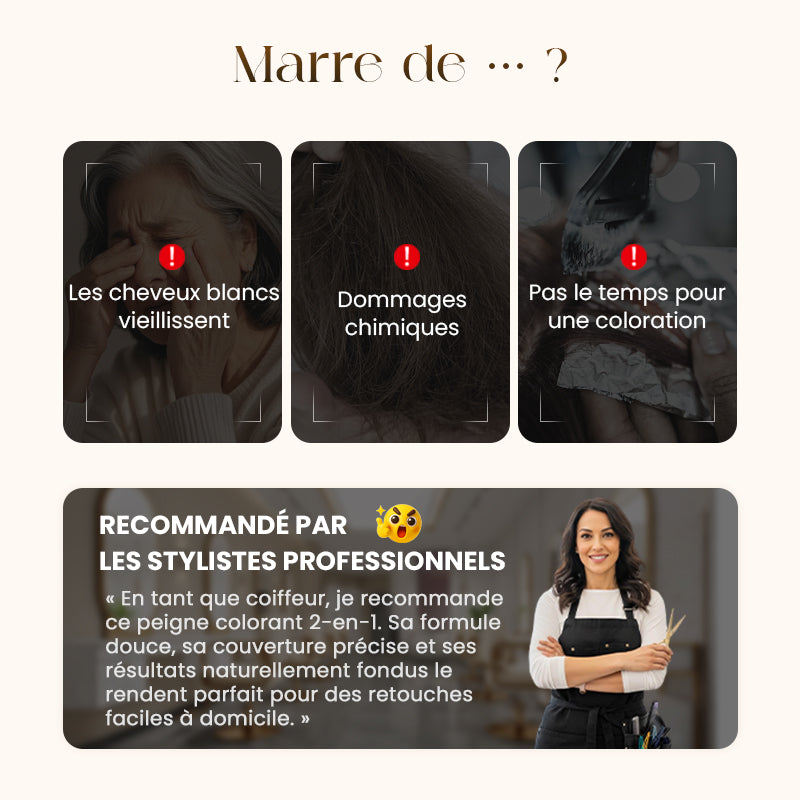 🔥Peigne Colorant 2 en 1 pour Cheveux Gris – Sans Chimie, Sans Taches, Résistant à l’Eau🔥