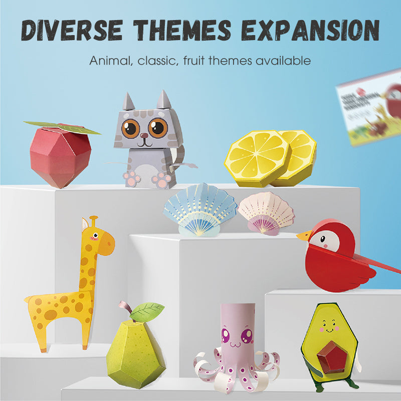 EXPÉRIENCE DE ORIGAMI 3D CAPTIVANTE : Le Livre de Origami 3D Fait à la Main propose une activité manuelle immersive. Avec trois ensembles comprenant 49 motifs uniques, il donne vie à des animaux, des fruits et des formes classiques en 3D. Non seulement il offre des heures de divertissement, mais il stimule également la créativité, la motricité fine et l'imagination spatiale des enfants en transformant du papier plat en modèles 3D détaillés.