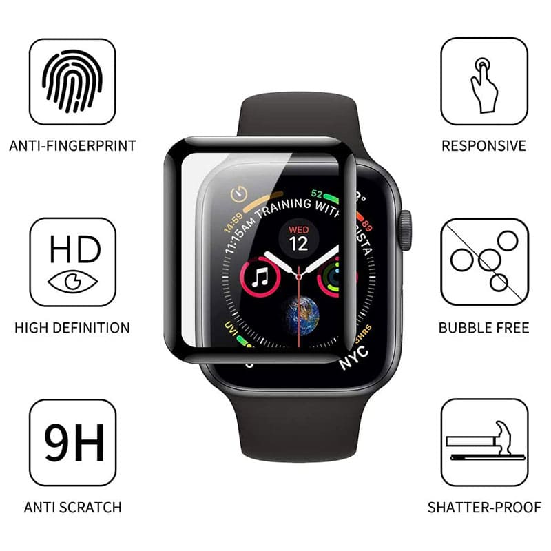 [Protection complète] Le protecteur d'écran couvre l'écran et les bords. Il protège entièrement l'écran de votre iWatch. Étanche à l'eau et à l'huile, il peut protéger parfaitement votre smartwatch. Un large choix de tailles : 38/40/42/44 mm.