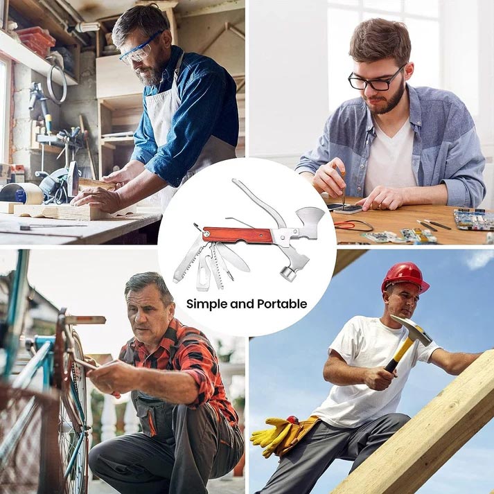 Robuste et de qualité supérieure : Marteau multifonction ergonomique en acier inoxydable de qualité. En cas d'urgence, ce petit gadget cadeau pour homme vous permet de marteler, couper, serrer et réparer facilement. Il est suffisamment robuste pour réaliser des travaux difficiles. De plus, son manche en bois offre une prise en main confortable.
