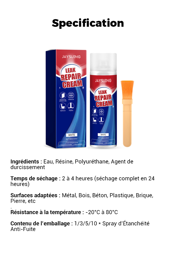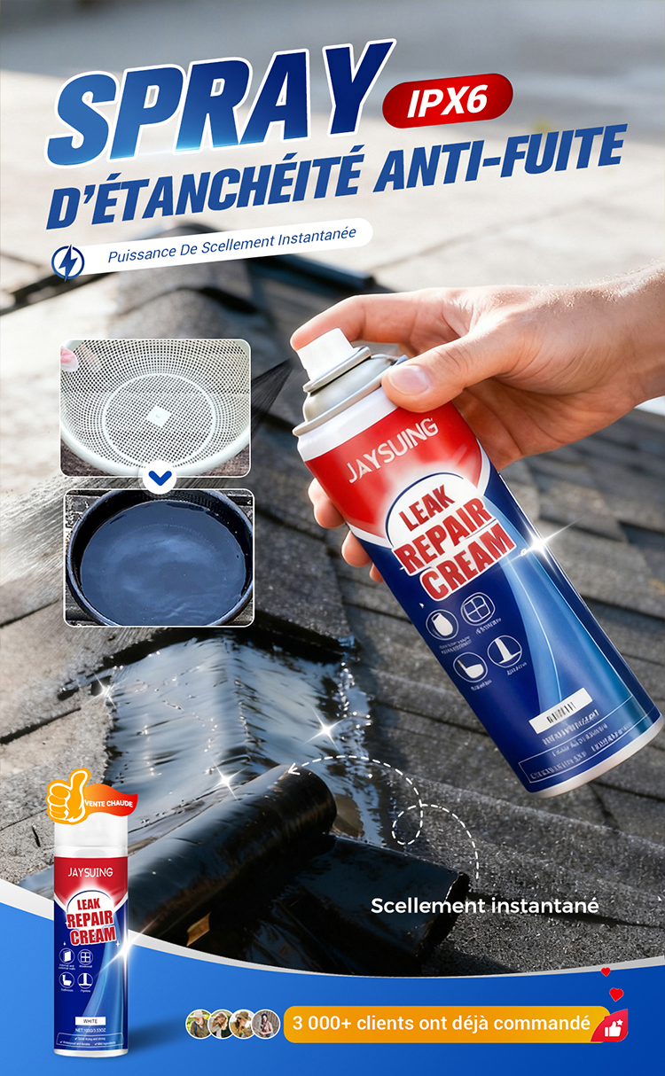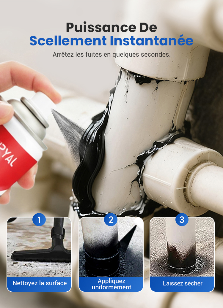 ✨ Spray réparateur de fuites instantané - Colmate les fissures et les interstices en 5 minutes, imperméable et flexible pour tuyaux et toitures