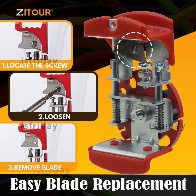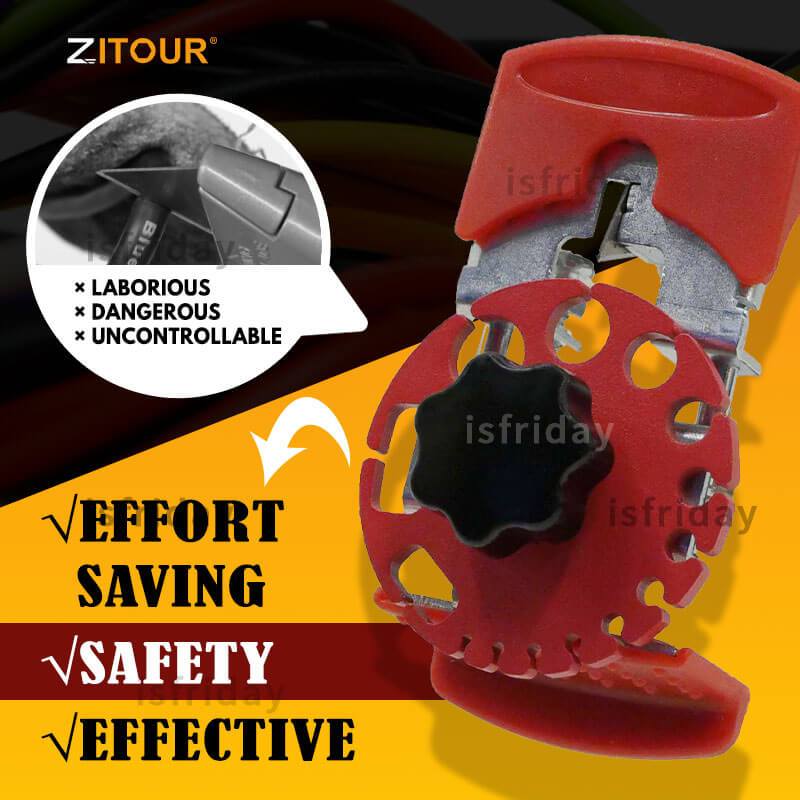 Zezzo® vous aide à dénuder rapidement les fils : il suffit d'insérer le fil dans le trou approprié, de régler la lame et vous êtes prêt à travailler. Cela réduit considérablement le temps nécessaire au dénudage et augmente l'efficacité.